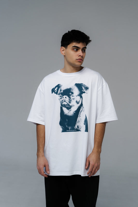 White Oversized Unisex Cotton T-Shirt with "Charlie Griffon" Print
