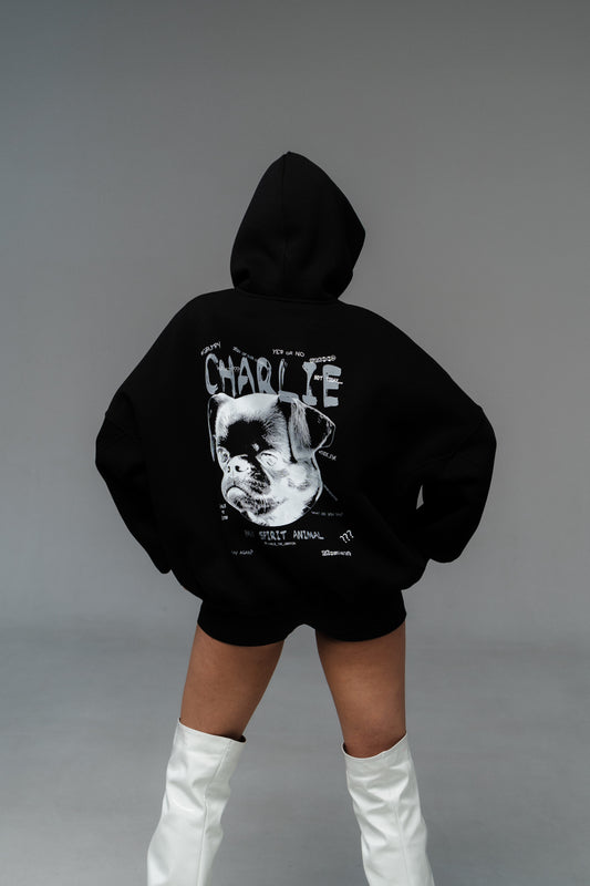 Unisex Oversized Hoodie with Exclusive Charlie Griffon Print - Black Color